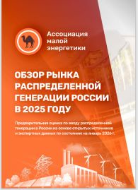 Мощность распределённой генерации в РФ достигла 38 – 39 ГВт (январь 2026)Согласно оценке Ассоциации малой энергетики (АМЭ), установленная мощность распределённой генерации в России на начало 2026 года составляет 38 – 39 ГВт (14 – 15 % от общей мощности генерации в стране), а к концу 2027 года может достичь 45 ГВт.
