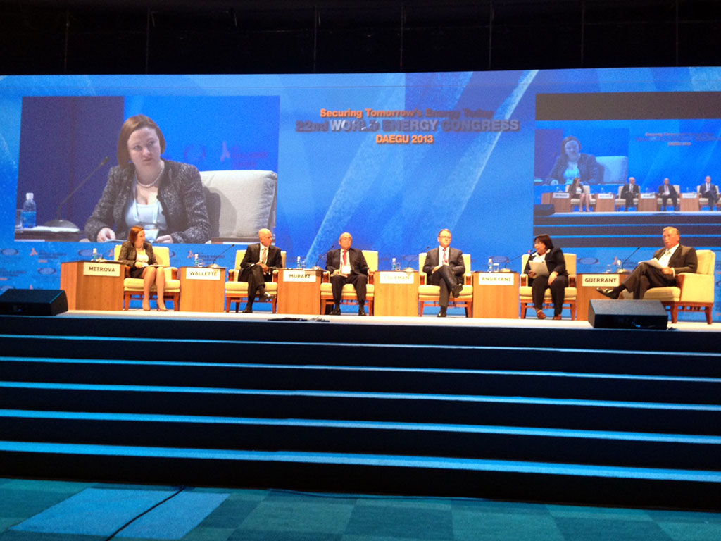 В рамках проходившего 14-18 октября в Тэгу (Корея) Мирового Энергетического Конгресса, заведующая Отделом развития нефтегазового комплекса России и мира ИНЭИ РАН, к.э.н. Татьяна Митрова выступила в качестве приглашенного модератора панельных дискуссий «Новая динамика азиатских рынков СПГ» и «Евразия: партнерство для раскрытия полного потенциала региона», прошедшей 15 октября. Кроме того, 14 октября в рамках Экспертного Форума, Т.Митрова представила исследование ( презентация), подготовленное коллективом Центра изучения мировых энергетических рынков ИНЭИ РАН. Кроме того, 15 октября по приглашению корейской стороны, Т.Митрова выступила на дополнительном мероприятии конгресса – специальной конференции “Северо-Восточная Азия: перспективы энергетического сотрудничества» с докладом «Роль природного газа в энергобезопасности Северо-Восточной Азии». А 16 сентября вместе с главным экономистом Международного энергетического агентства Фаттихом Биролем Т.Митрова провела лекцию/мастер-класс для участников «Форума молодых лидеров» по энергетическим сценариям.